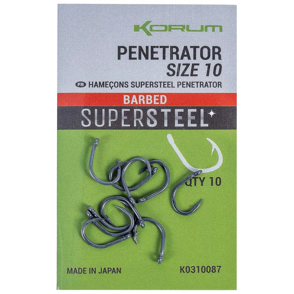 Die Stahl Penetrator-Haken sind so konstruiert, dass sie sich einhaken und halten, indem sie eine besonders hohe Hakensicherheit bieten. Mit einer chemisch geschärften Spitze, die sich im See oder Flussbett nicht abnutzt. Der Penetrator ist durch sein subtiles, nach innen gedrehtes Öhr am effektivsten beim Hair-Rigging mit geschmeidigen Vorfächern.