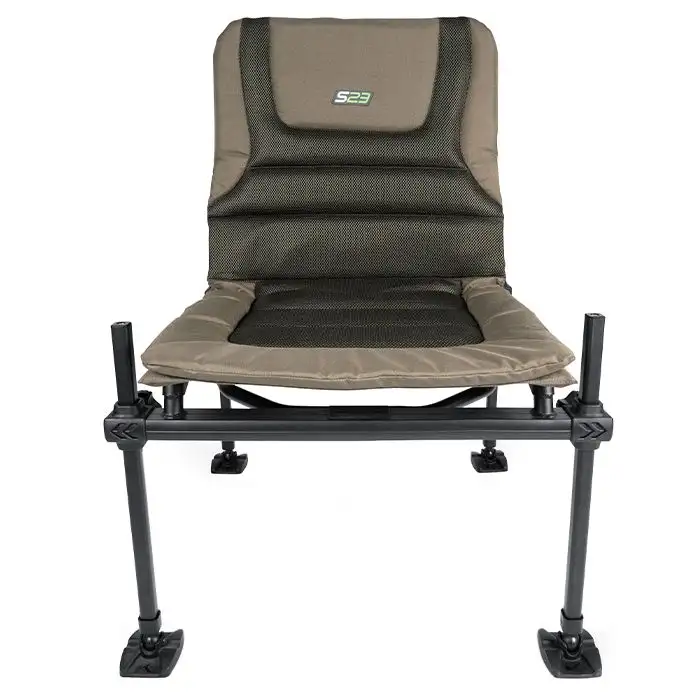 Wenn Sie den ganzen Tag hindurch vollständigen Komfort gewährleisten und eine Reihe von Zubehörteilen in Reichweite haben möchten, dann ist der S23 Accessory Stuhl eine stilvolle und bequeme Einrichtung. Ein völlig verstellbares Beinsystem ermöglicht verschiedene Höhen, die Beine mit einem Durchmesser von 25 mm sitzen auf einem schnell zusammenklappbaren Rahmen, der einen leichten und einfachen Auf- und Abbau ermöglicht. Der Rahmen erleichtert auch das Einhängen einer Reihe von Angelzubehör, sodass Sie bequem aus nächster Nähe angeln können, ohne bei einer Tagessession fehl am Platz sind.
